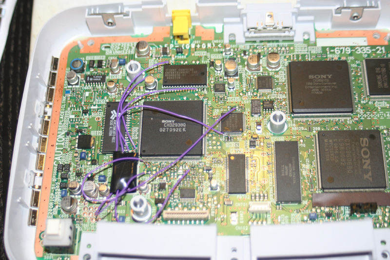 Jag har försökt löda in chippet i min PSOne, men jag lyckas inte spela brända spel. Det fungerar fortfarande utmärkt att spela vanliga svenska köpta spel, så jag antar att det är nåt med chippet som är fel. När jag försöker spela ett bränt spel så blir skärmen konstig när playstation loggan ska visas. Har ni nån aning om vad detta kan orsakas av? Om det är nån specifik lödpunkt som behöver fixas, eller om jag bara råkat paja chippet när jag skulle löda på sladdarna? Jag bifogar bilder. Snälla hjälp!