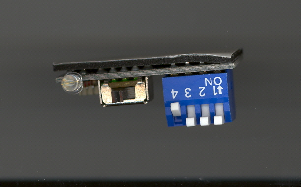 Om du ska flasha från din dator med LPT-porten ska du även stänga av ditt chip (den stora switchen ska stå bort från dioden).