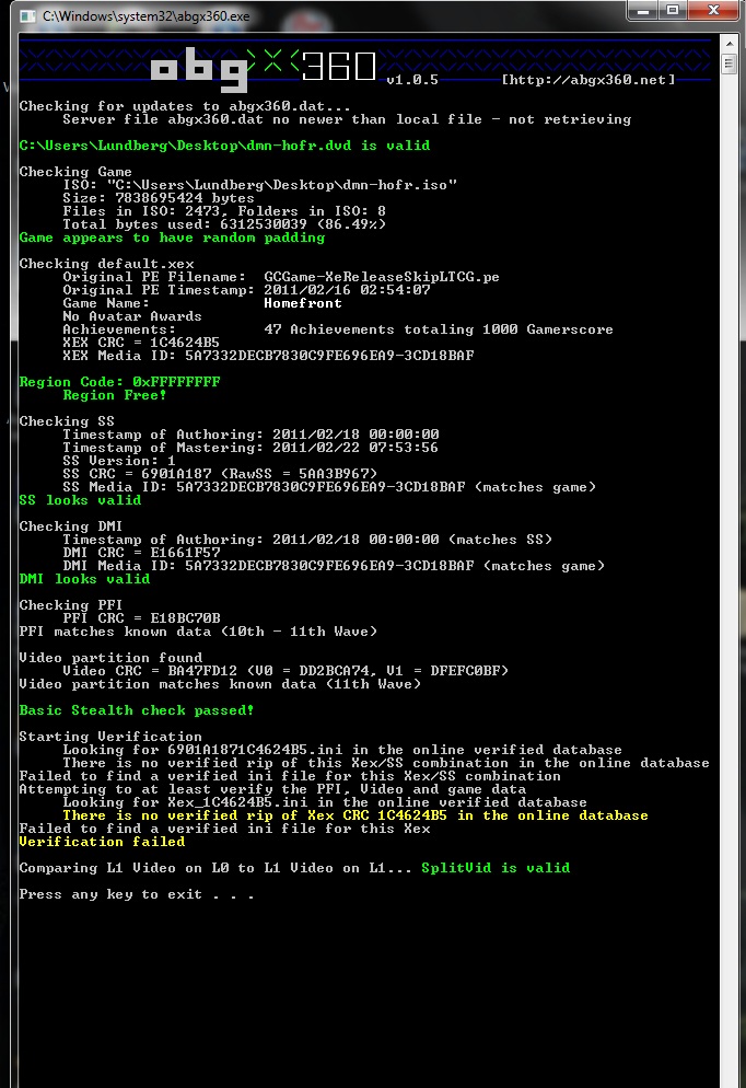 Ok patchar var kanske fel uttryck...jag har kört den i abgx360 o allt ser bra ut tills den kommer ner till "Starting Verification" ....kolla här: