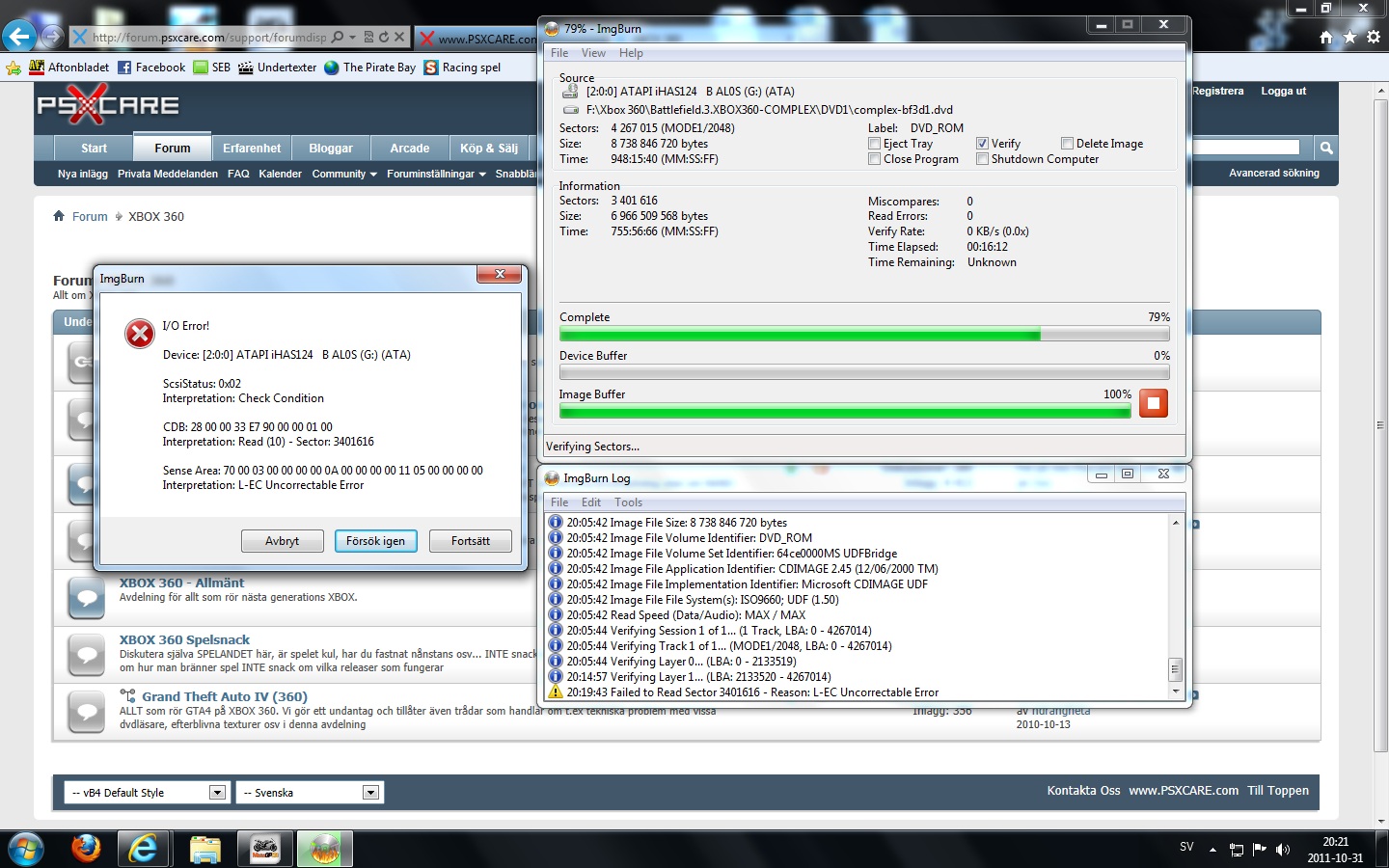 W 20:25:43 Failed to Read Sector 3401621 - Reason: L-EC Uncorrectable Error