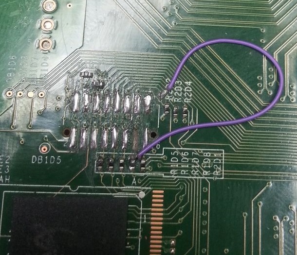 Fick problem med utläsning av nand på ett Corona v4 kort och bestämde mig för att plocka bort pin header´n som jag monterat för att städa upp.